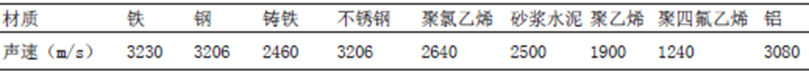 管道材质及内衬对测量的影响在于声波在不同媒介中传播速度的差异。如果材质传播声波的速度大于设定声速,则测量结果偏小,反之偏大。各种管道材质的声速见表4。